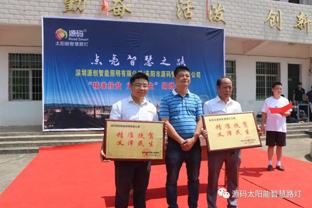 2018年7月28日捐贈(zèng)給耒陽(yáng)市哲橋鎮(zhèn)一批源碼太陽(yáng)能智慧路燈,助力哲橋鎮(zhèn)基礎(chǔ)設(shè)施建設(shè)。